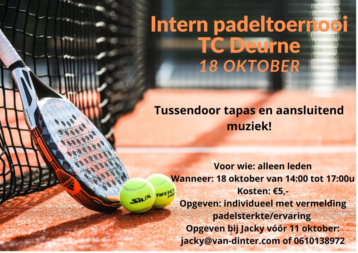 Op 18 oktober organiseren we ons eerste Intern Padeltoernooi voor onze leden.