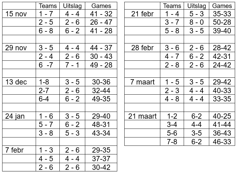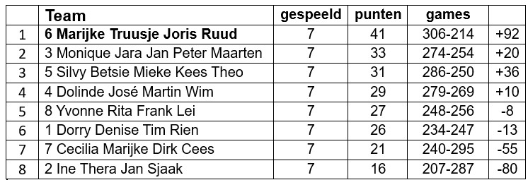 Interne Gemengd Dubbel competitie 2025 / 2026 is afgelopen.