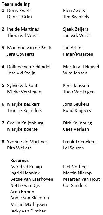 Je kunt opgeven met een vaste partner, als je niemand kunt vinden proberen wij iemand hiervoor te zoeken, en wordt dan gekoppeld aan een ander stel waarmee je een team vormt. We proberen de teams zo gelijkwaardig mogelijk te maken zodat we leuke wedstrijden krijgen.