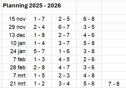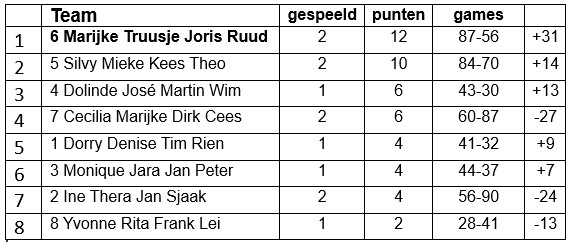 Interne Gemengd Dubbel competitie 2025 / 2026 gaat weer van start.